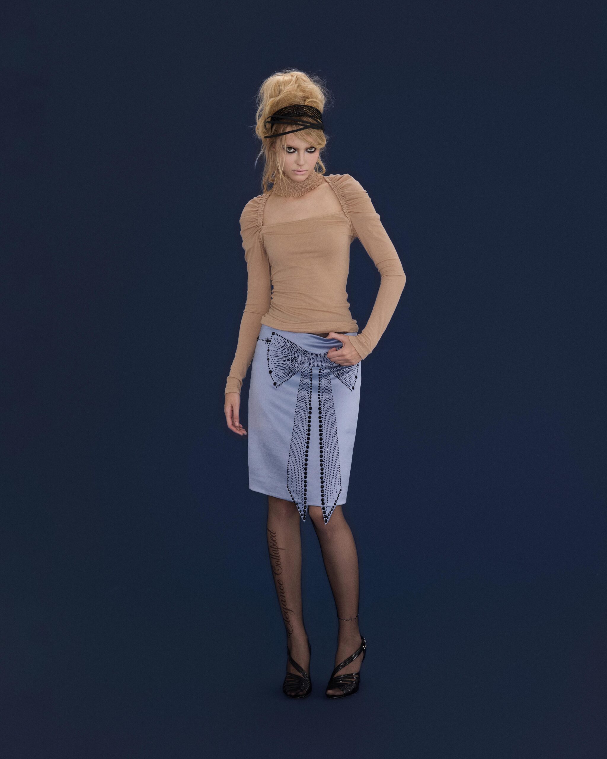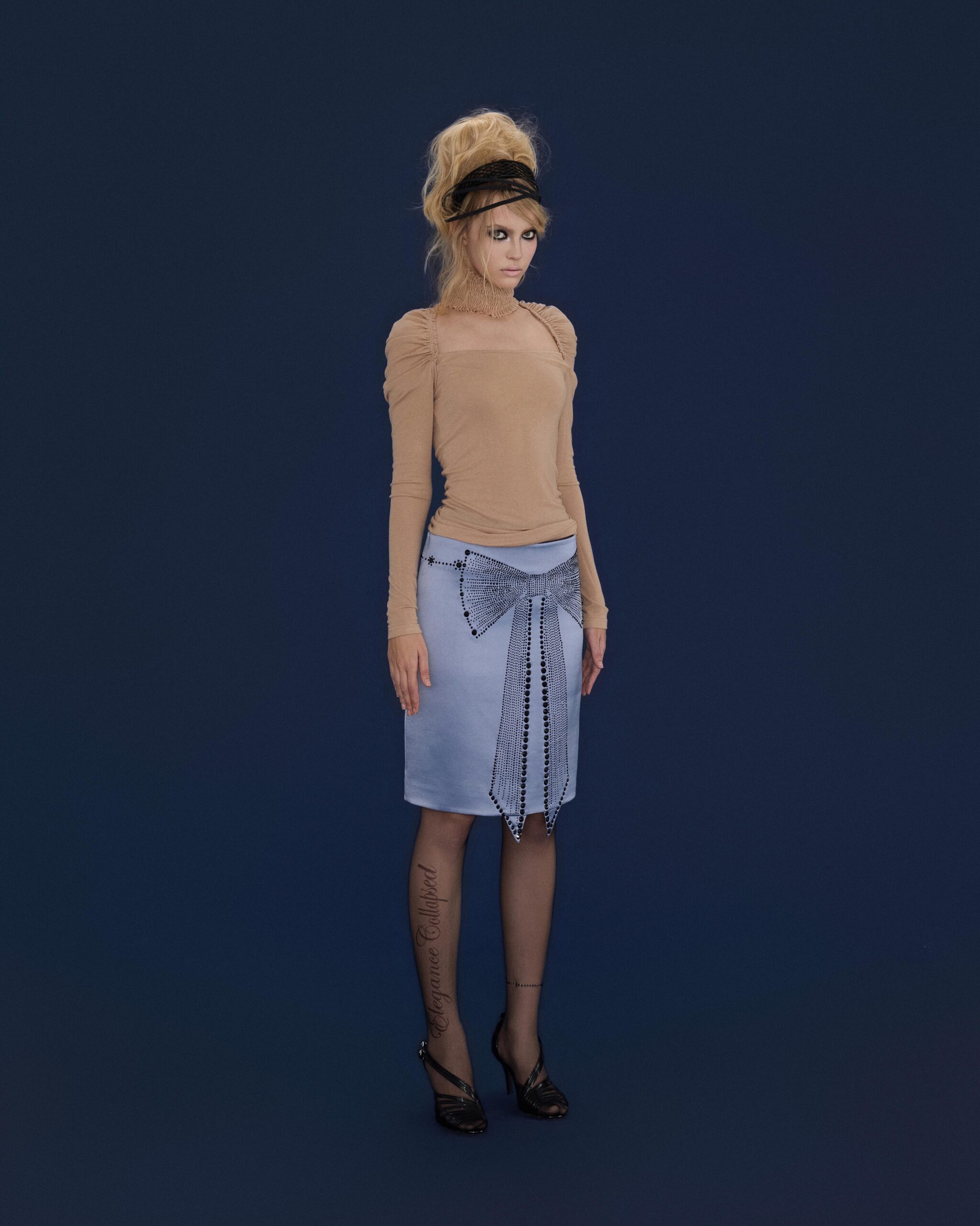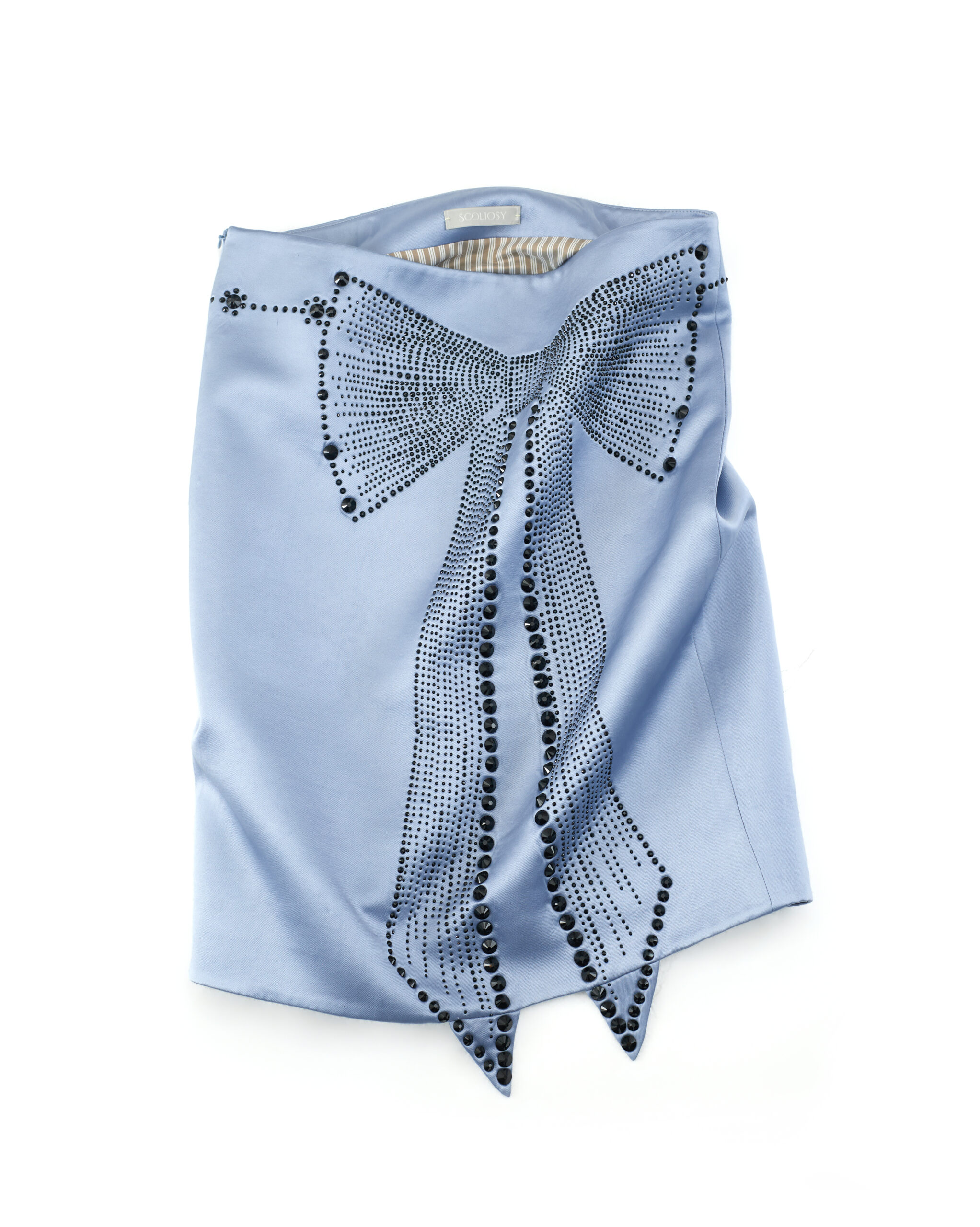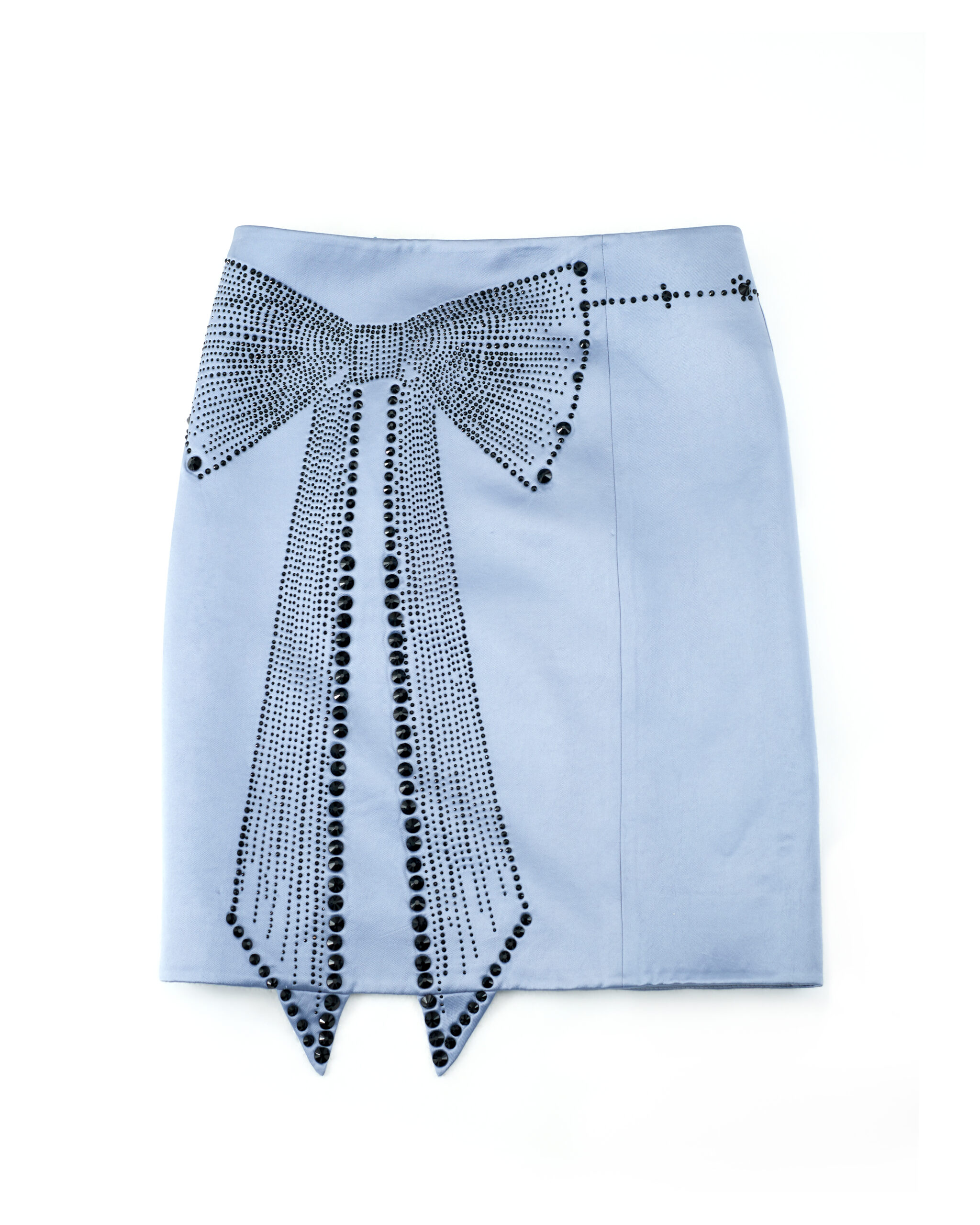 Discover the Glace Bowtie Rhinestone Skirt, crafted from satin acetate fabric with a refined, understated sheen.