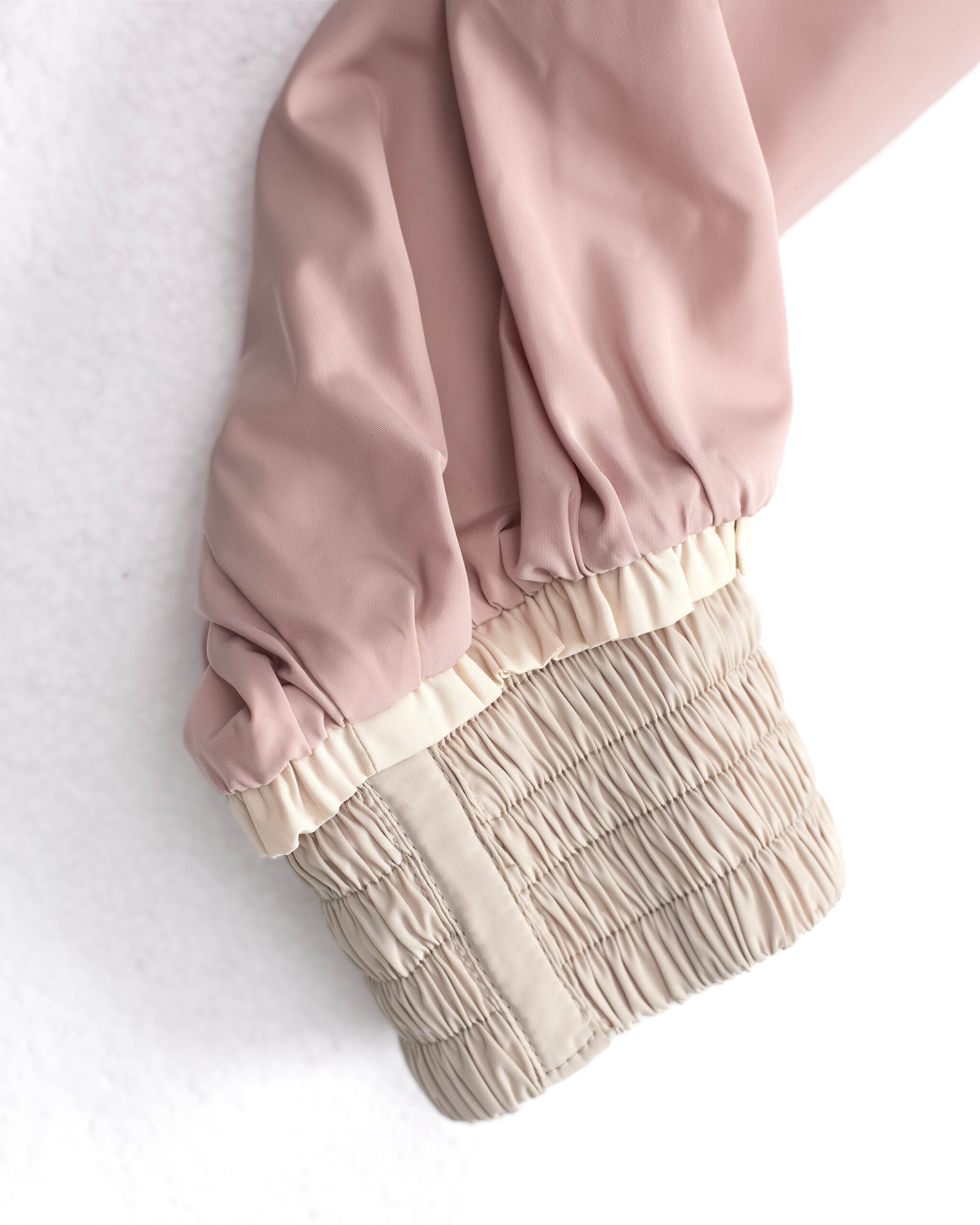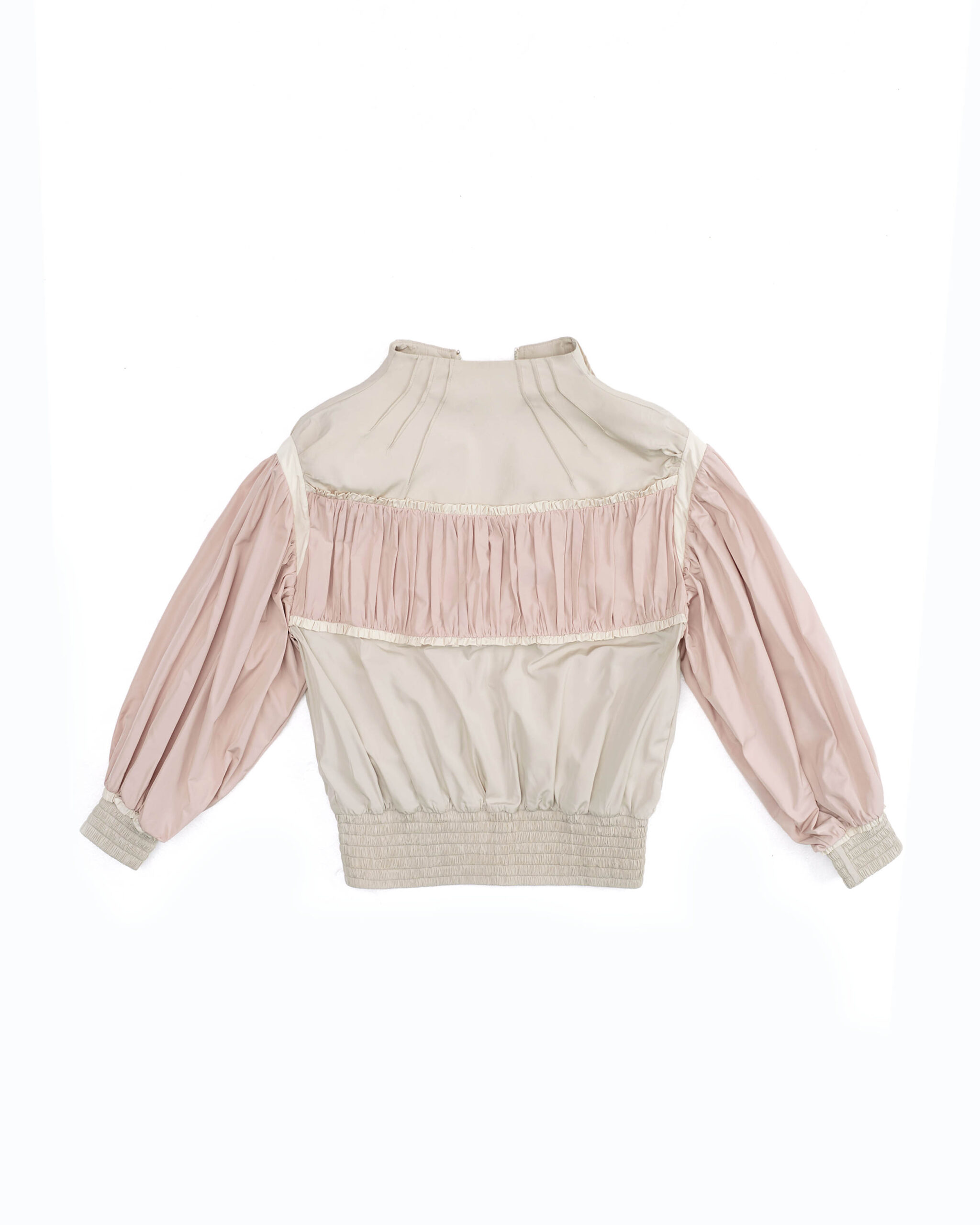 Panel construction is finished with soft ruffle detailing and subtle smocking accents.