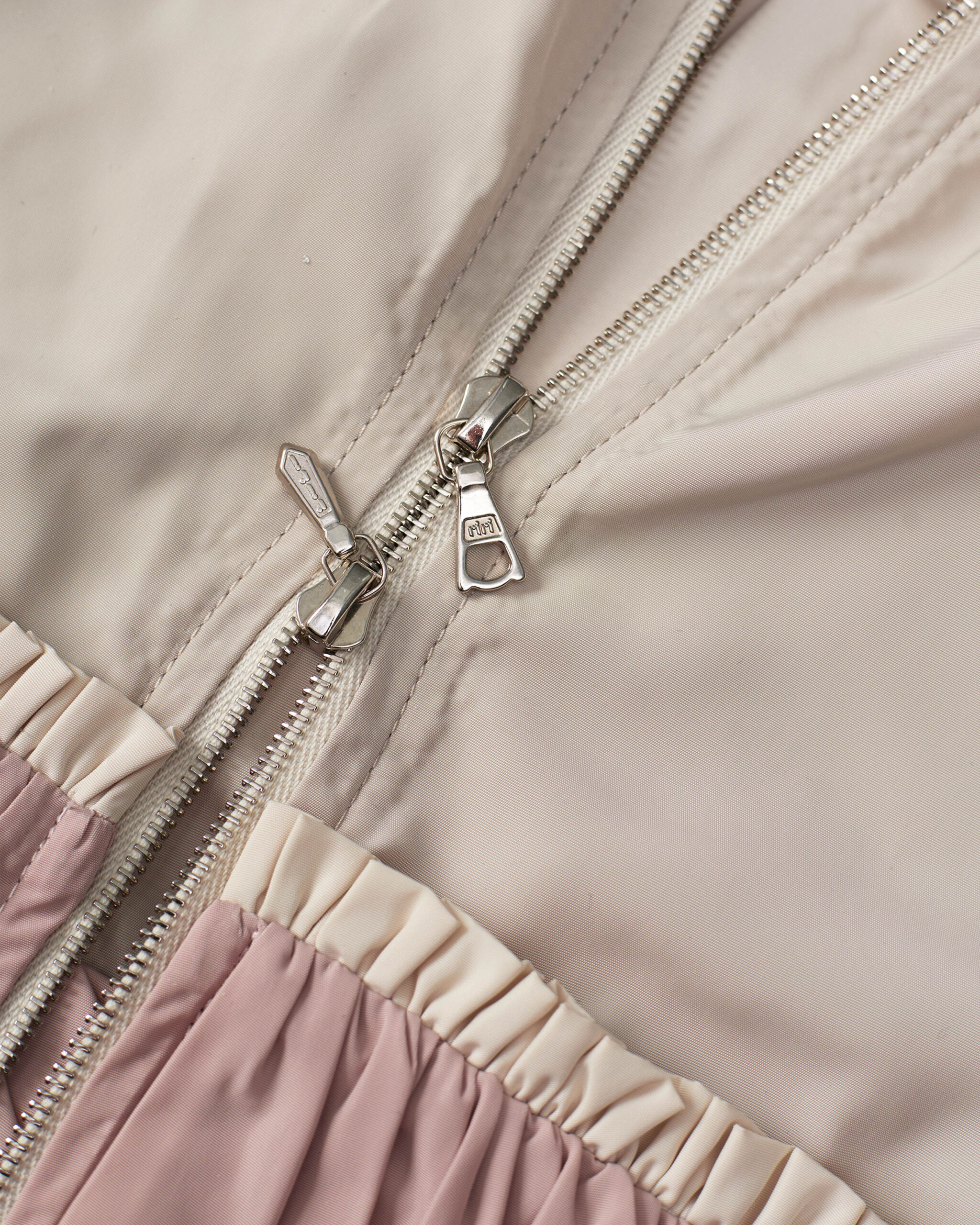 Features a double-sided Riri zipper for adjustable fit and styling versatility.